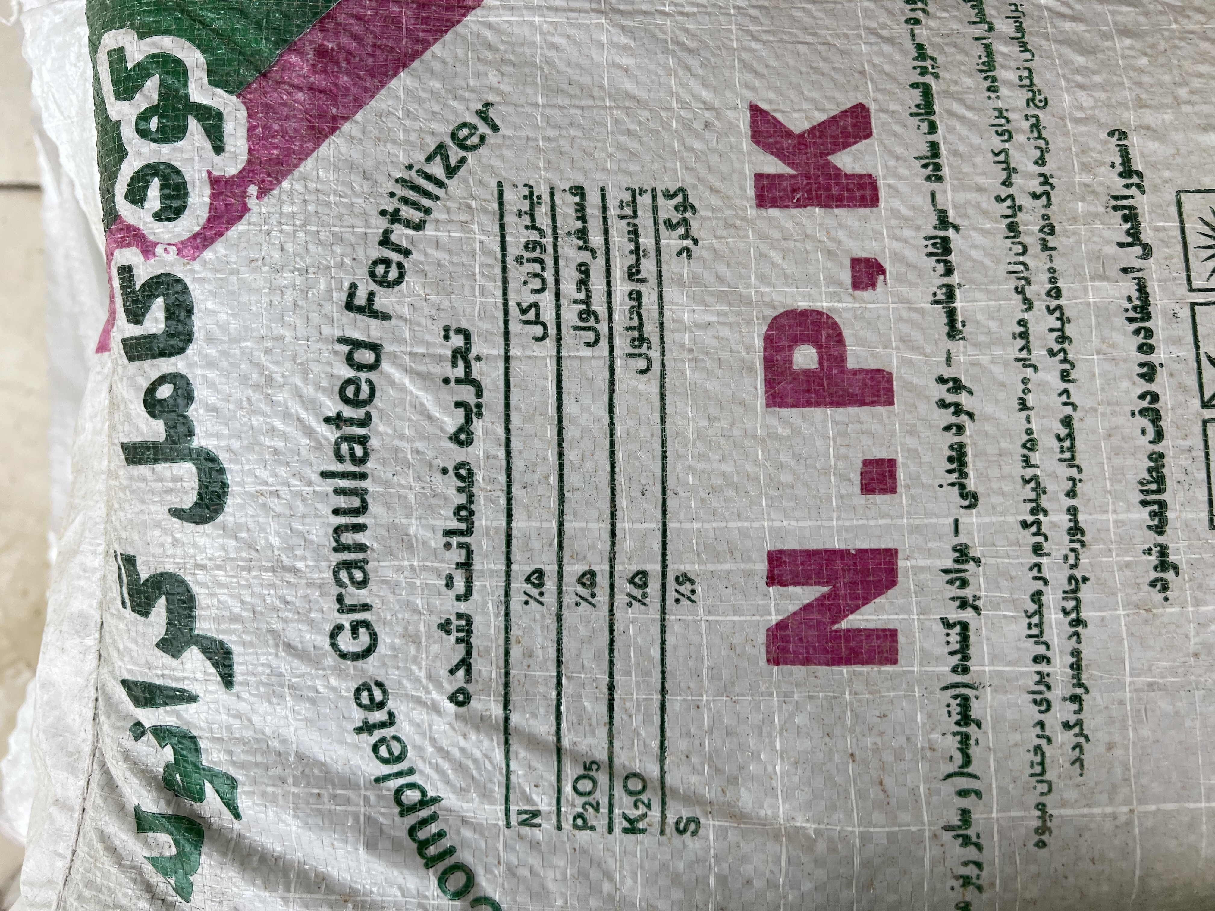 ترکیبات👇 ✔️ نیتروژن ۵٪ ✔️ فسفر ۵٪ ✔️ پتاسیم ۵٪ ✔️ گوگرد ۶٪ مقدار مصرف👇 گیاهان زراعی ۳۰۰ تا ۳۵۰ کیلوگرم در هکتار درختان میوه(چالکود) ۳۵۰ تا ۵۰۰ کیلوگرم در هکتار