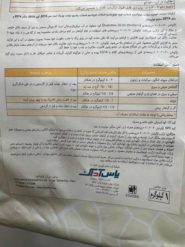کود کامل ۲۰ ۲۰ ۲۰ فیتوناتورا ایتالیا تمام ترکیبات مورد نیاز برای رشد و نمو گیاه را دارد.