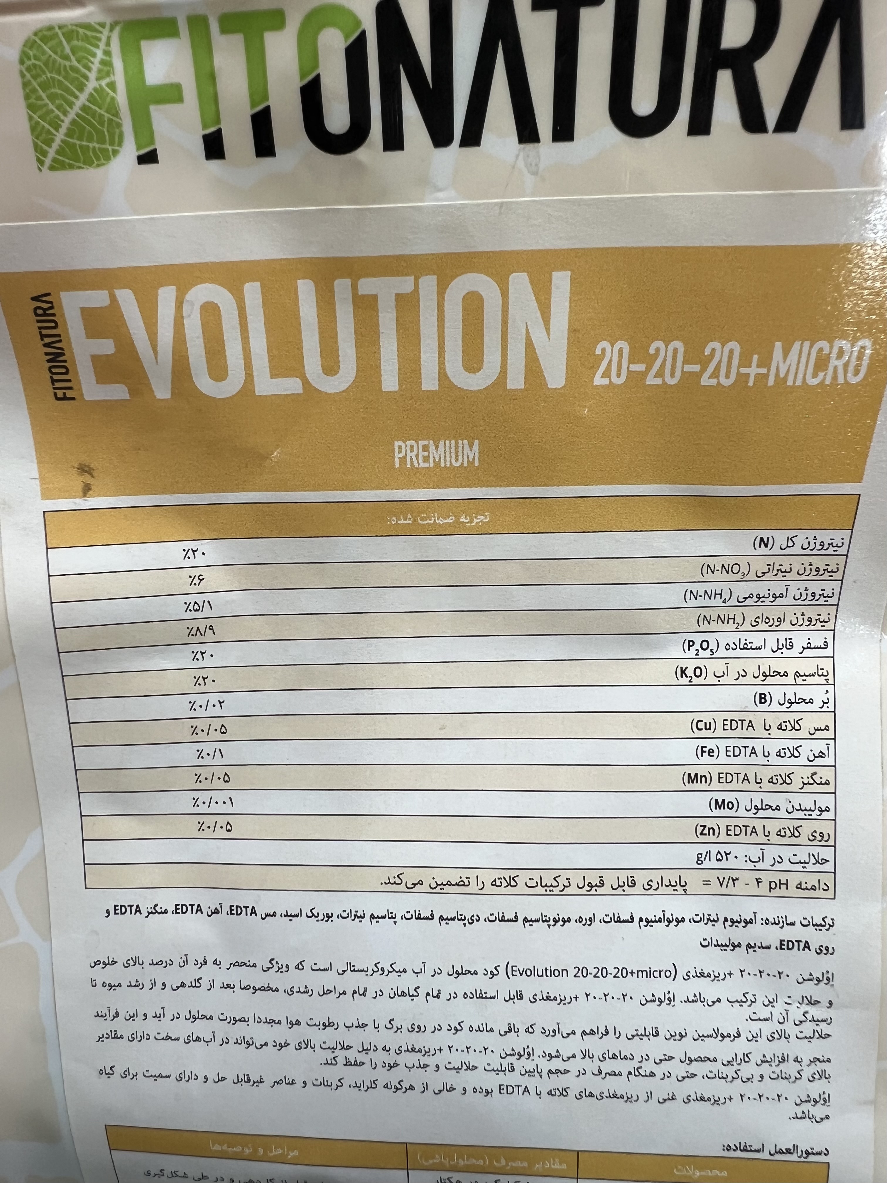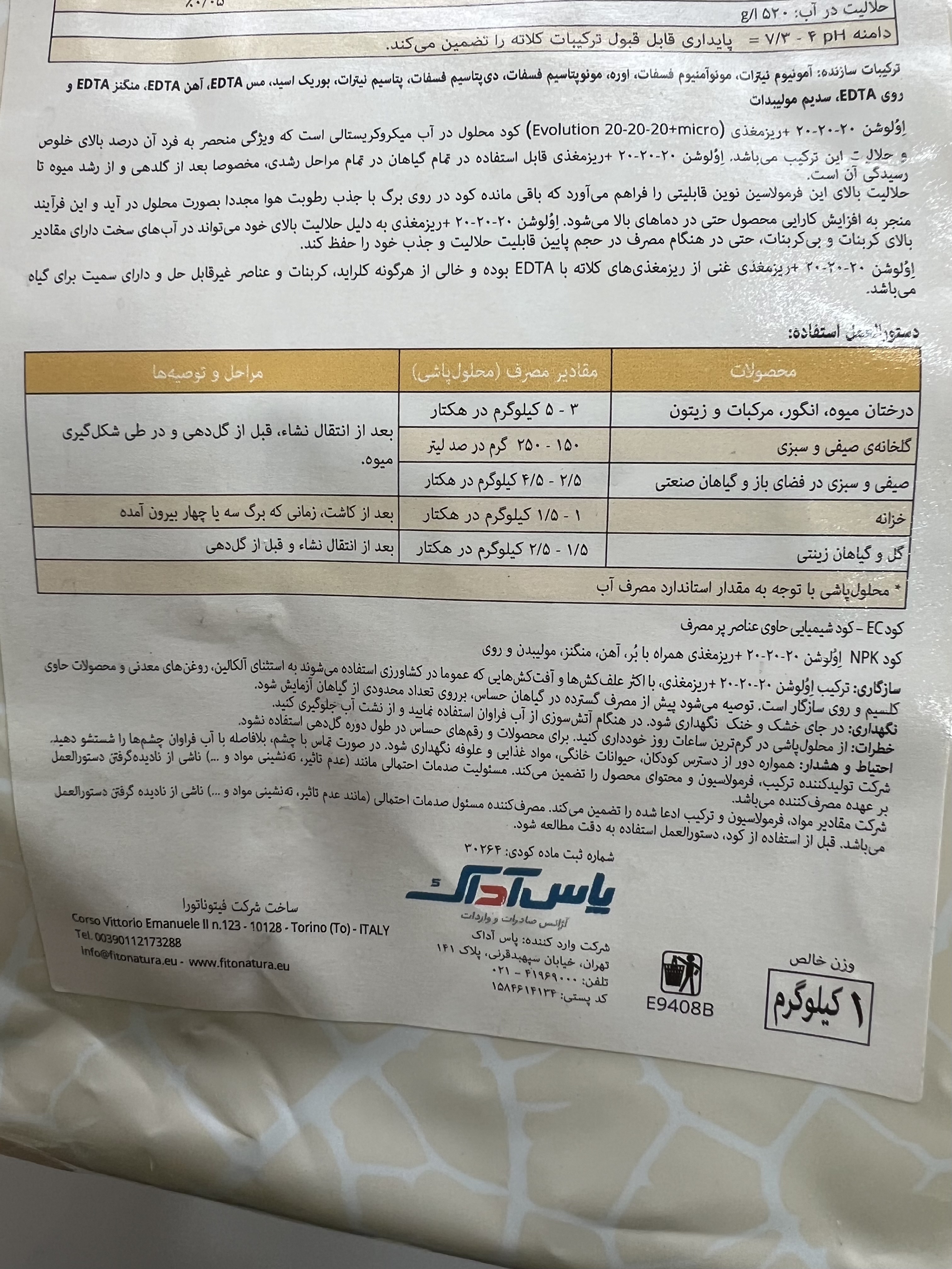 کود کامل ۲۰ ۲۰ ۲۰ فیتوناتورا ایتالیا تمام ترکیبات مورد نیاز برای رشد و نمو گیاه را دارد.