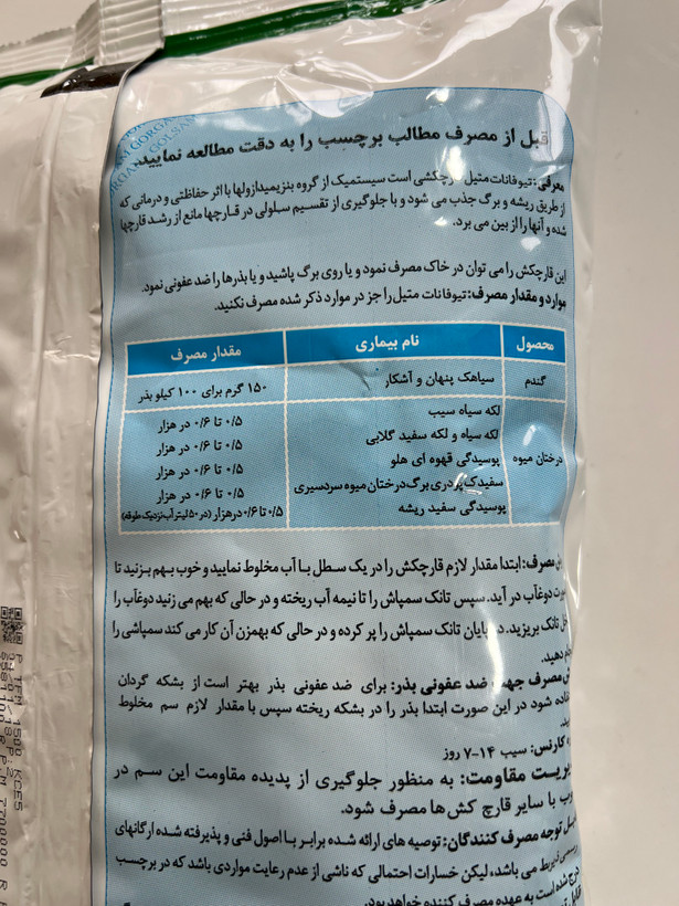 تیوفانات متیل هم برای مصرف در خاک، هم برای محلولپاشی روی شاخه و برگ و هم ضدعفونی بذر کاربرد دارد.