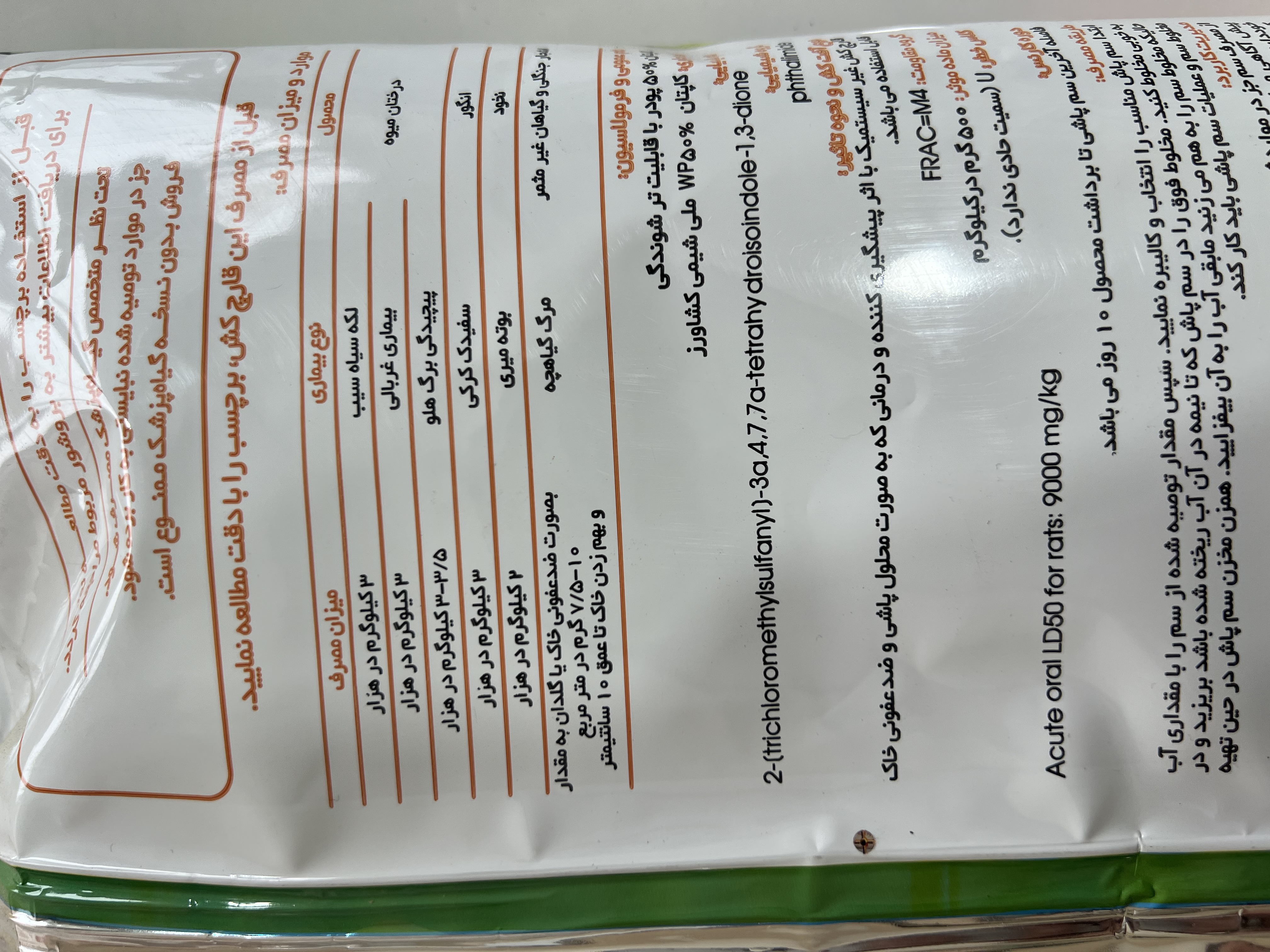 کاپتان برای طیف گستردهای از بیماریهای قارچی نظیر بوته میری، سفیدکهای داخلی، پوسیدگی تلخ سیب، لکه سیاه سیب و گلابی، لکه غربالی، لب شتری هلو، مرگ گیاهچه و… استفاده میشود.