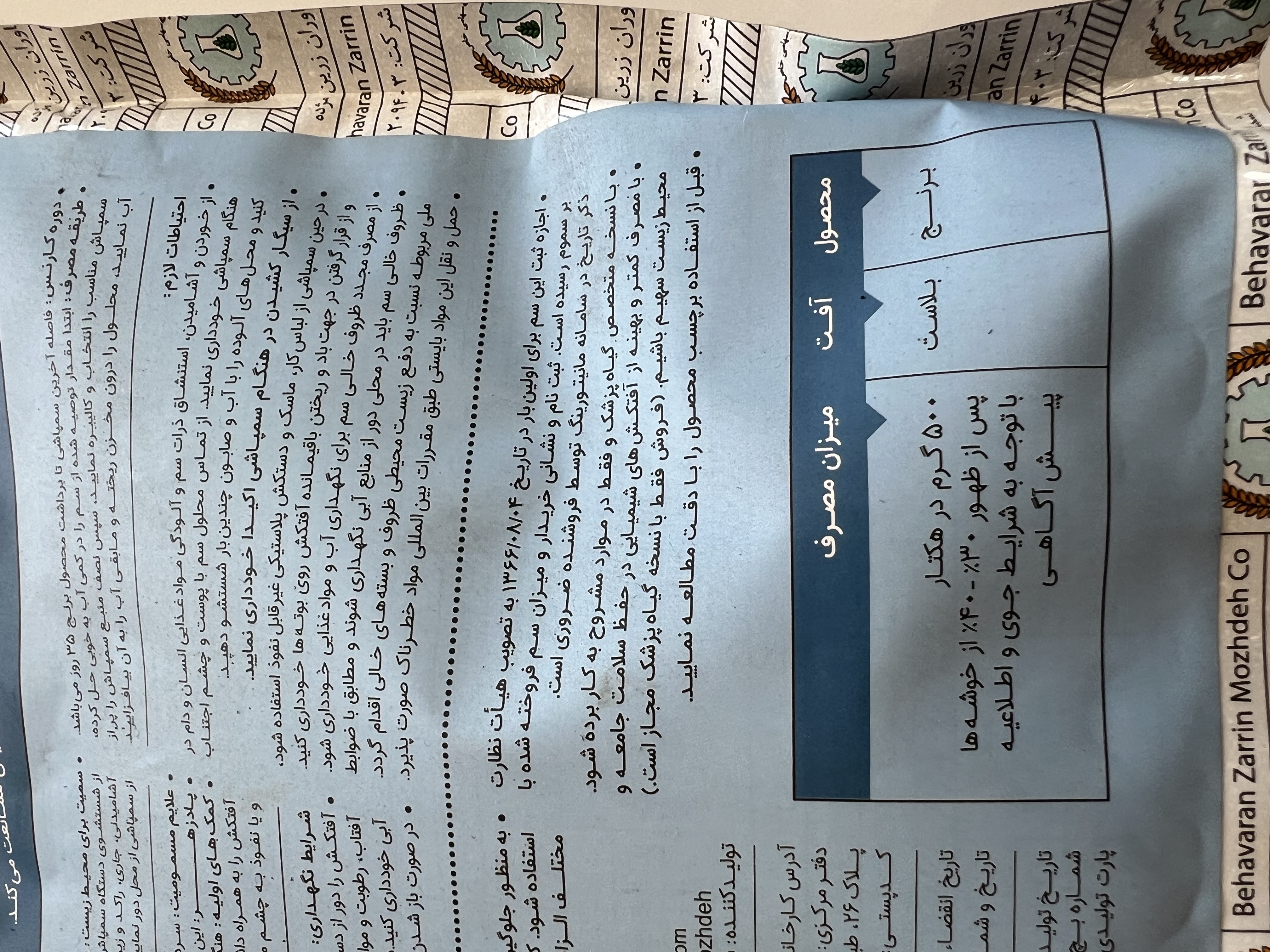 ۵۰۰ گرم در هکتار پس از ظهور ۳۰% تا ۴۰% از خوشهها