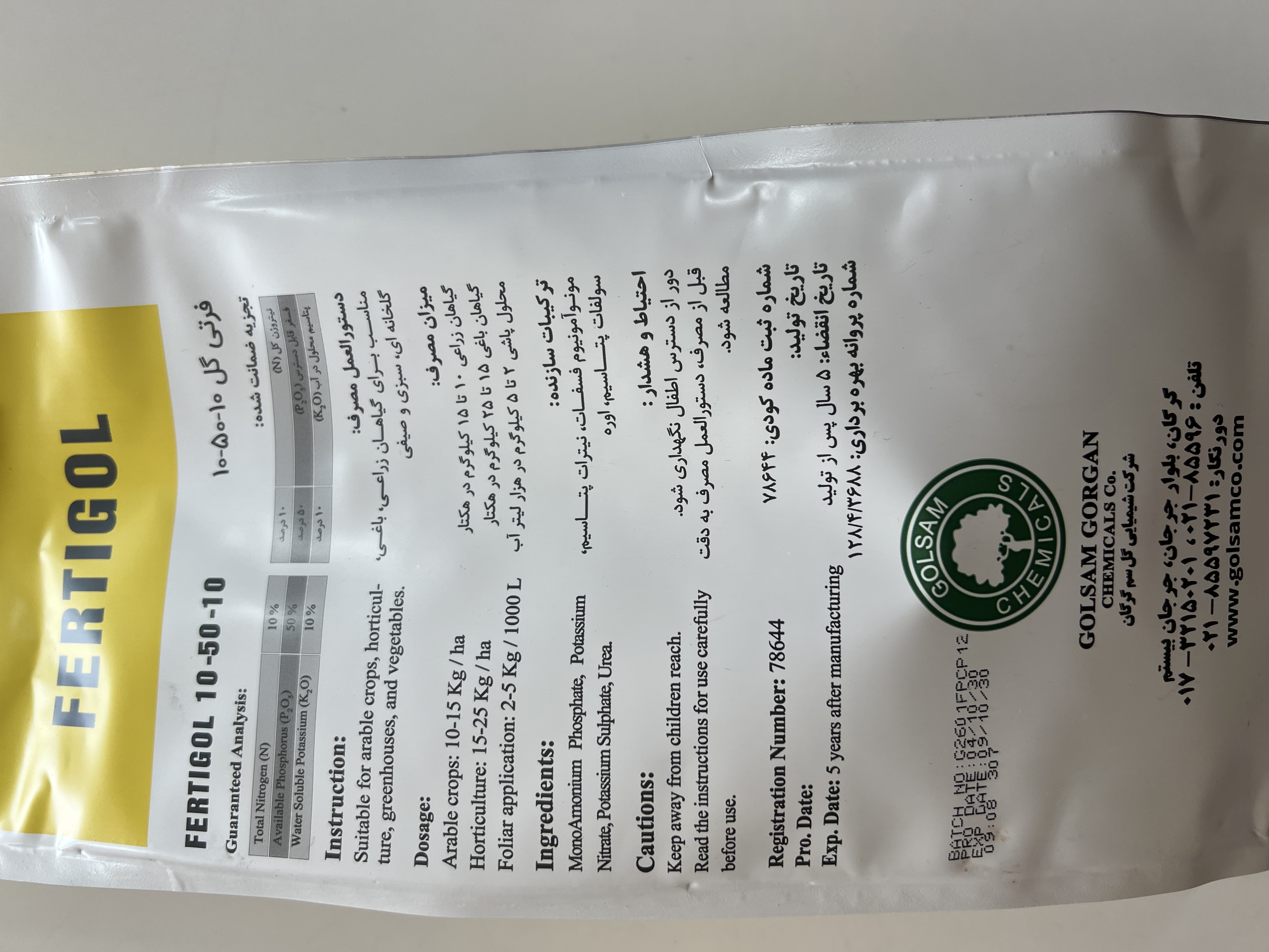 کود فسفر بالا ۱۰-۵۰-۱۰ فرتی گل گلسم ۱ کیلویی