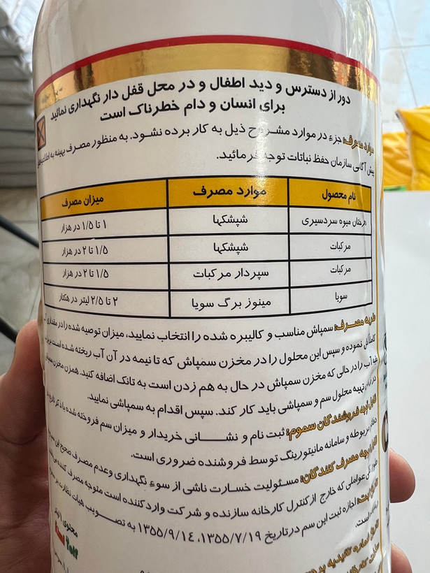 دورسبان یکی از قویترین و کارآمدترین حشرهکشها در کنترل بسیاری آفات هست که متاسفانه در سالهای اخیر از لیست سموم مجاز کشور حذف شده و تولید نمیشود.