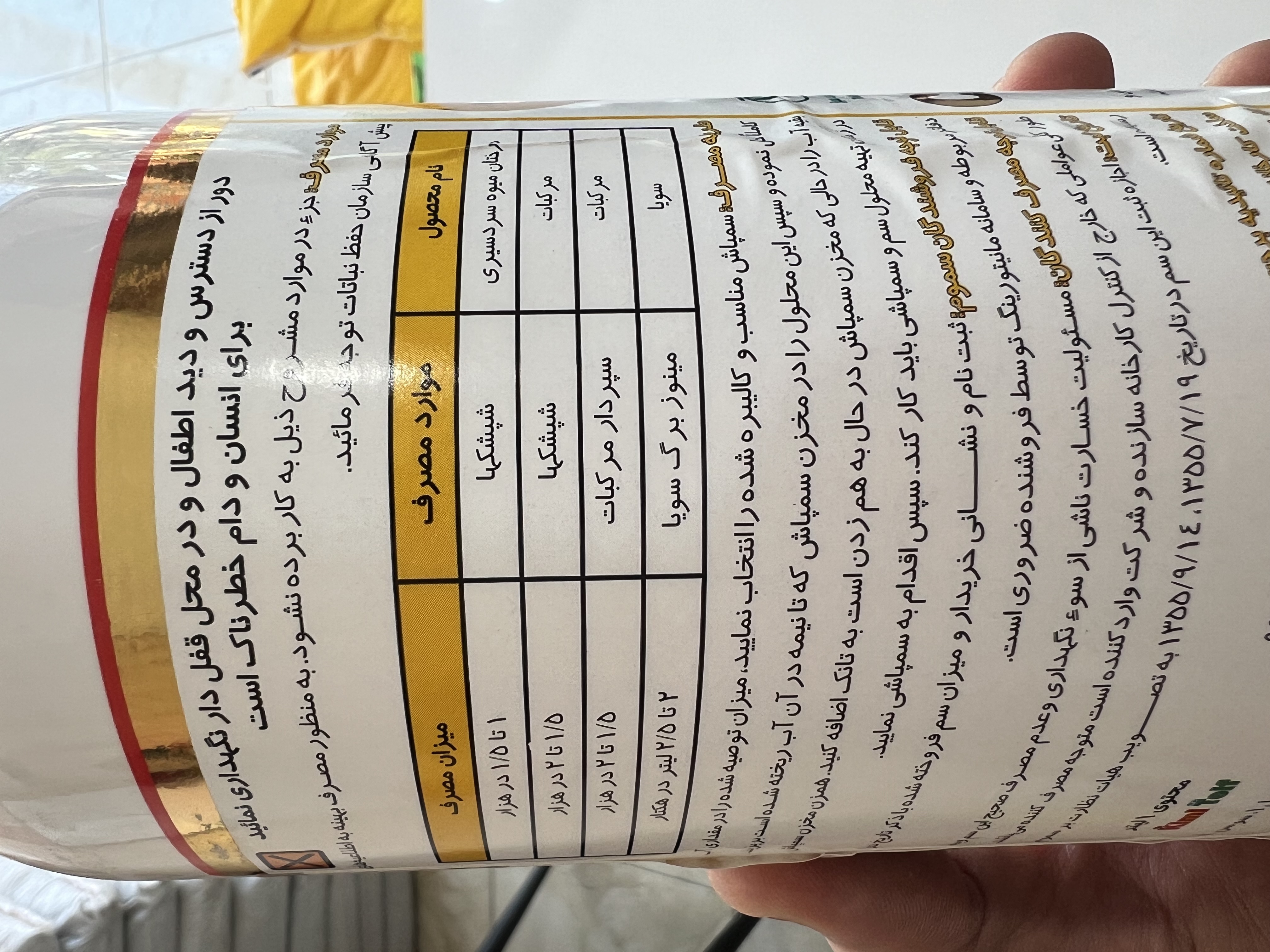 مقدار مصرف: ۱ تا ۲/۵ در ۱۰۰۰ لیتر آب