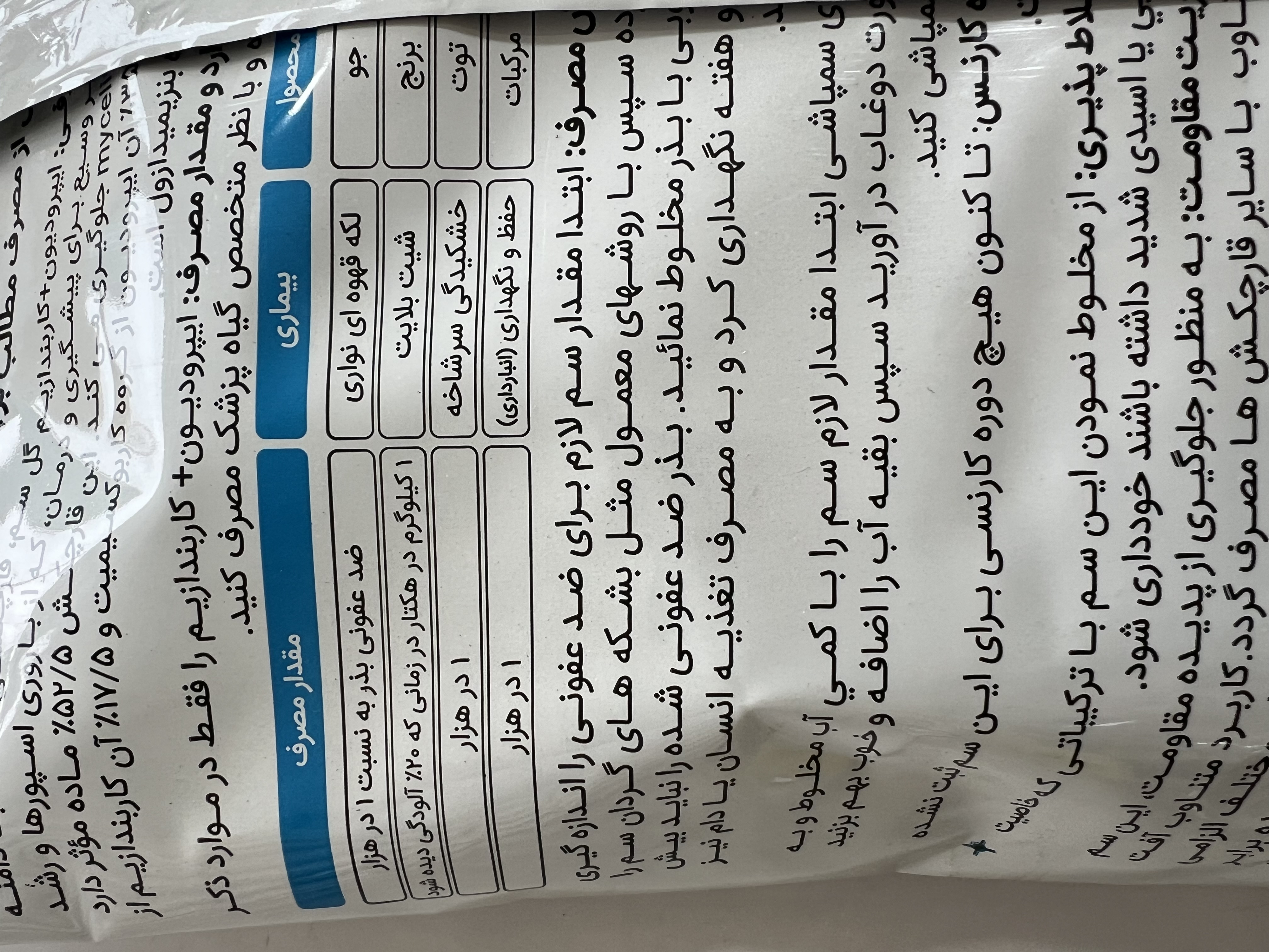 مقدار مصرف 👈 ۱ کیلوگرم در ۱۰۰۰ لیتر آب