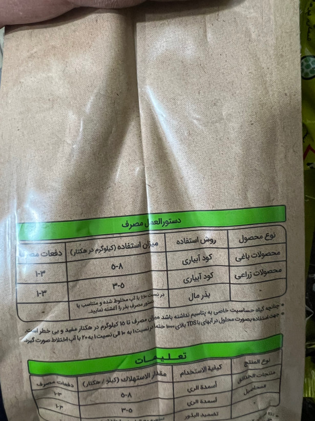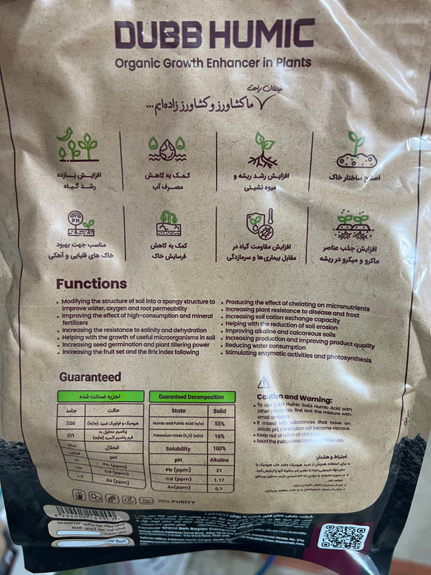 ترکیبات: هیومیک اسید و فولویک اسید ۵۵٪ + پتاسیم ۱۶٪