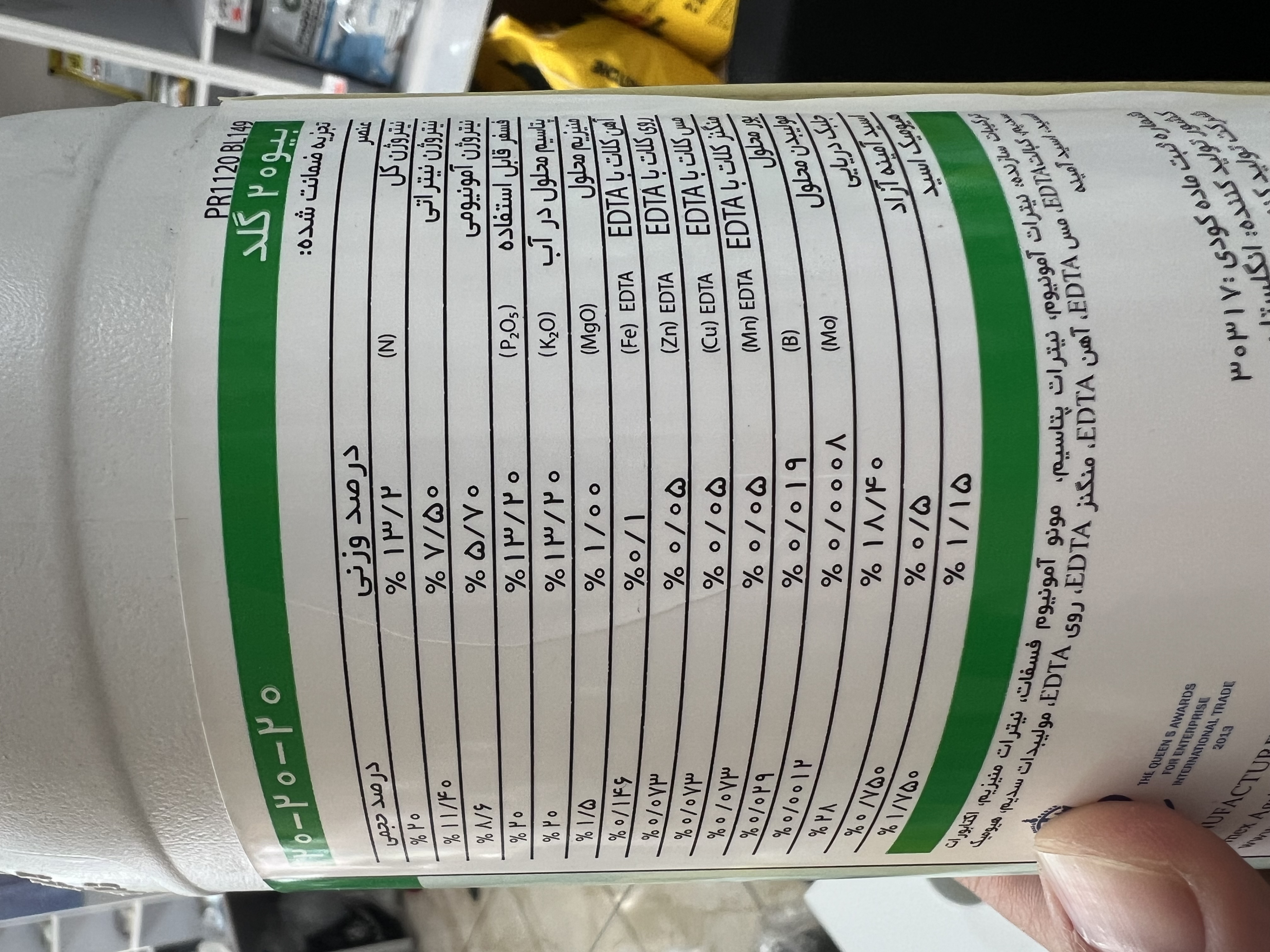 ترکیبات: یک کود کامل شامل عناصر اصلی NPK + عناصر ریز مغذی به فرم کلات شده + آمینو اسید + جلبک دریایی + هیومیک اسید