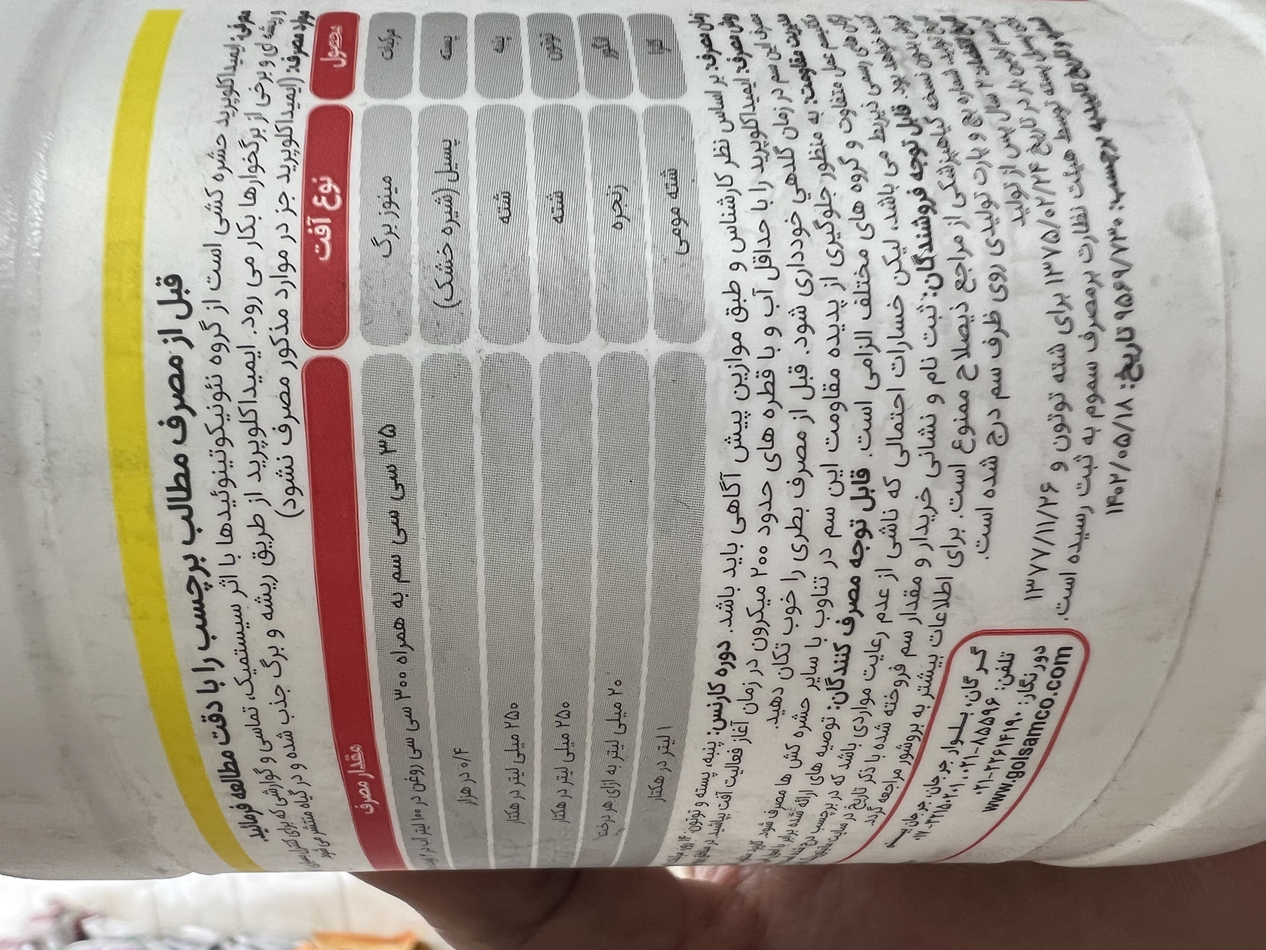 مقدار مصرف : ۰/۵ لیتر در ۱۰۰۰