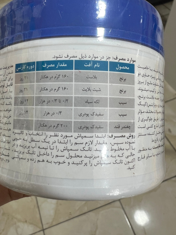 مقدار مصرف👈 ۲۰۰ تا ۳۰۰ گرم در ۱۰۰۰ لیتر آب