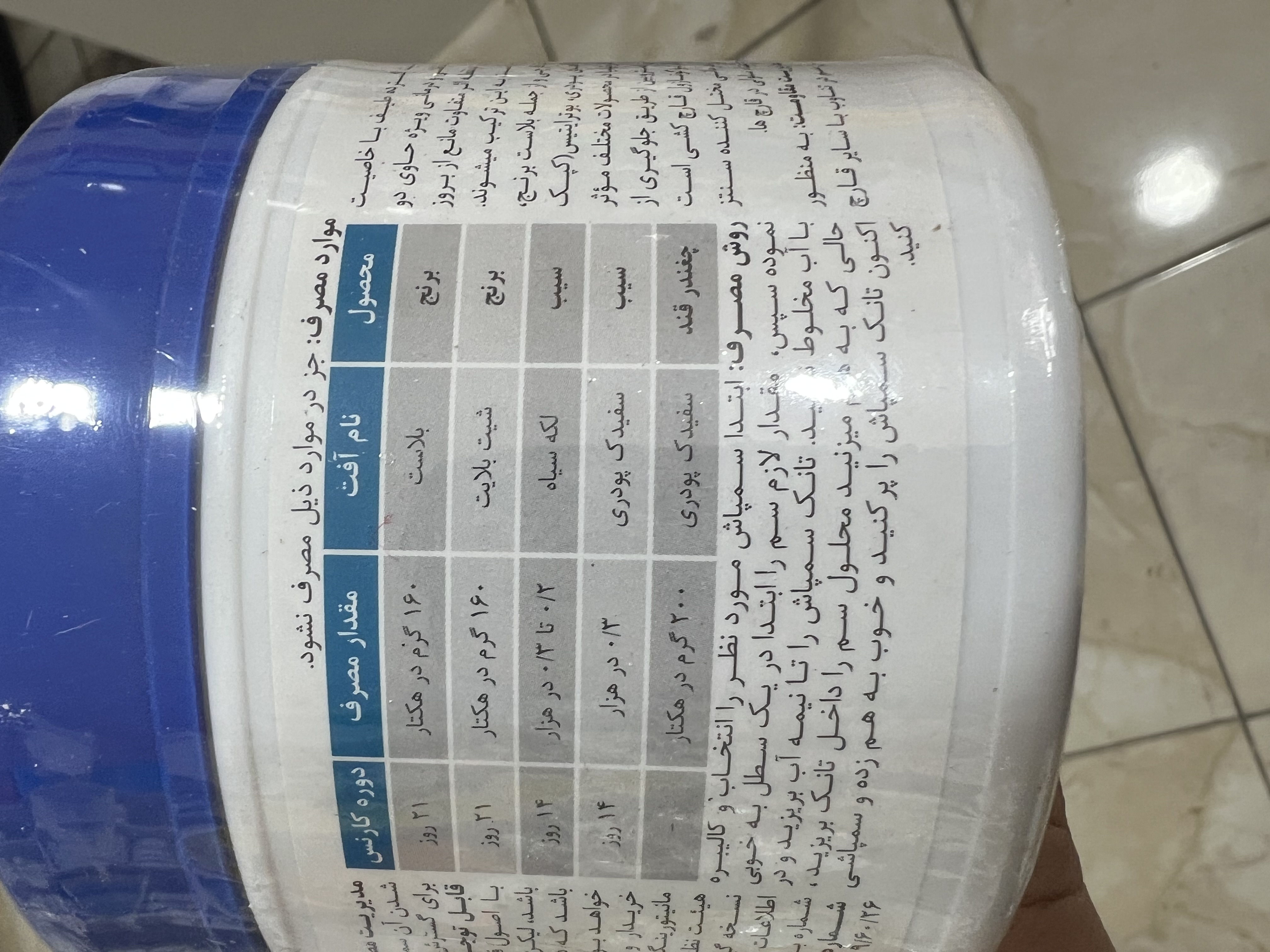 مقدار مصرف👈 ۲۰۰ تا ۳۰۰ گرم در ۱۰۰۰ لیتر آب