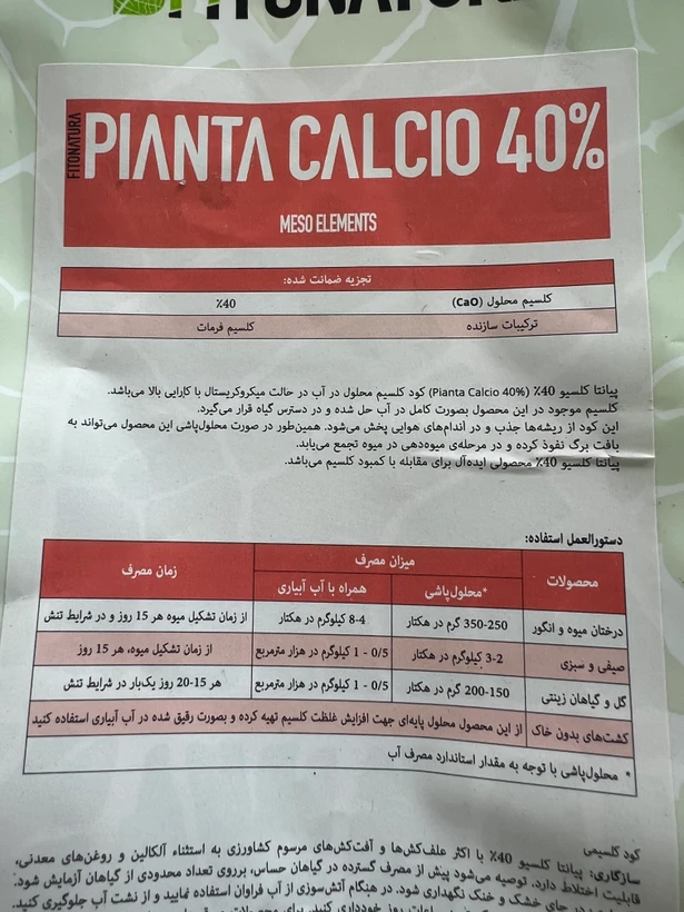 کود پیانتا کلسیو یک کود کلسیم محلول در آب، به صورت میکروکریستال با کارایی بالا است که حاوی ۴۰٪ کلسیم به فرم کلسیم فرمات میباشد.
