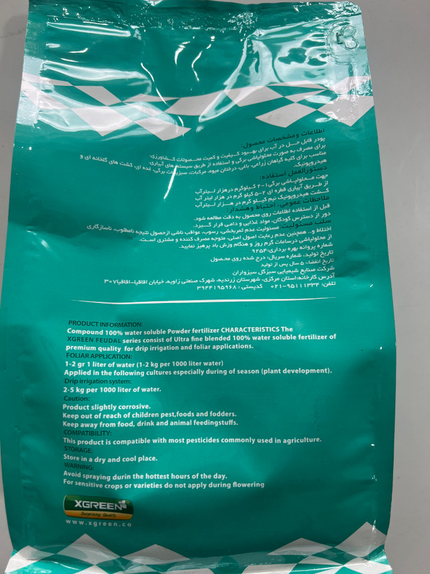ترکیبات: پتاسیم ۳۶٪ + فسفر ۱۲٪ + نیتروژن ۱۲٪ + آهن + روی + منگنز + آمینو اسید