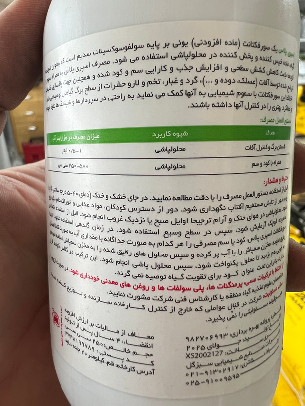 برای اختلاط با سم و کود ۰/۵ لیتر در ۱۰۰۰