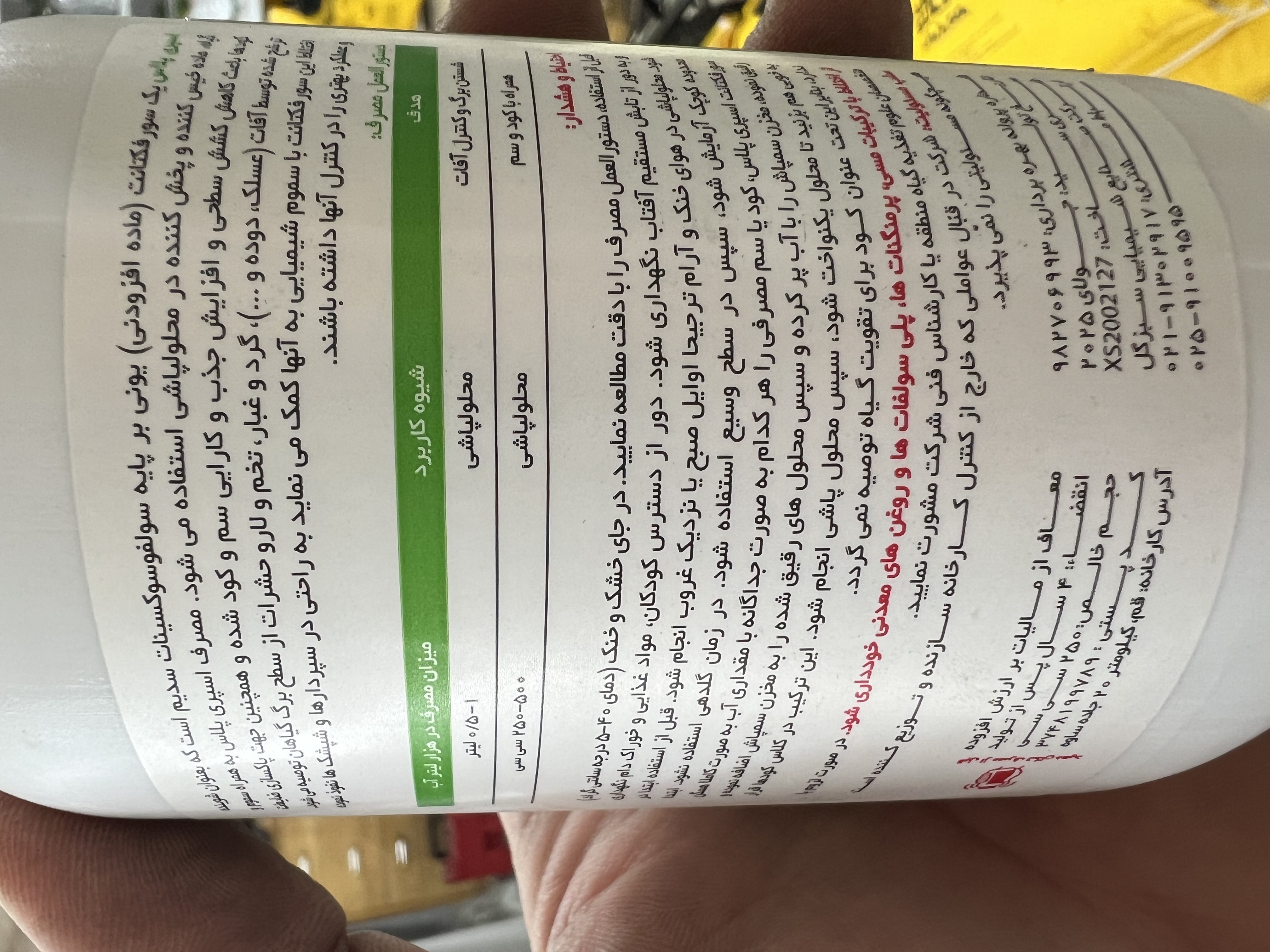 برای اختلاط با سم و کود ۰/۵ لیتر در ۱۰۰۰