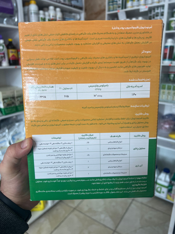 آمینو بایوران یه ترکیب منحصر به فرد و خاص از آمینواسیدهای مورد نیاز گیاه به همراه باکتریهای محرک رشد(Bacillus velzensis) میباشد.